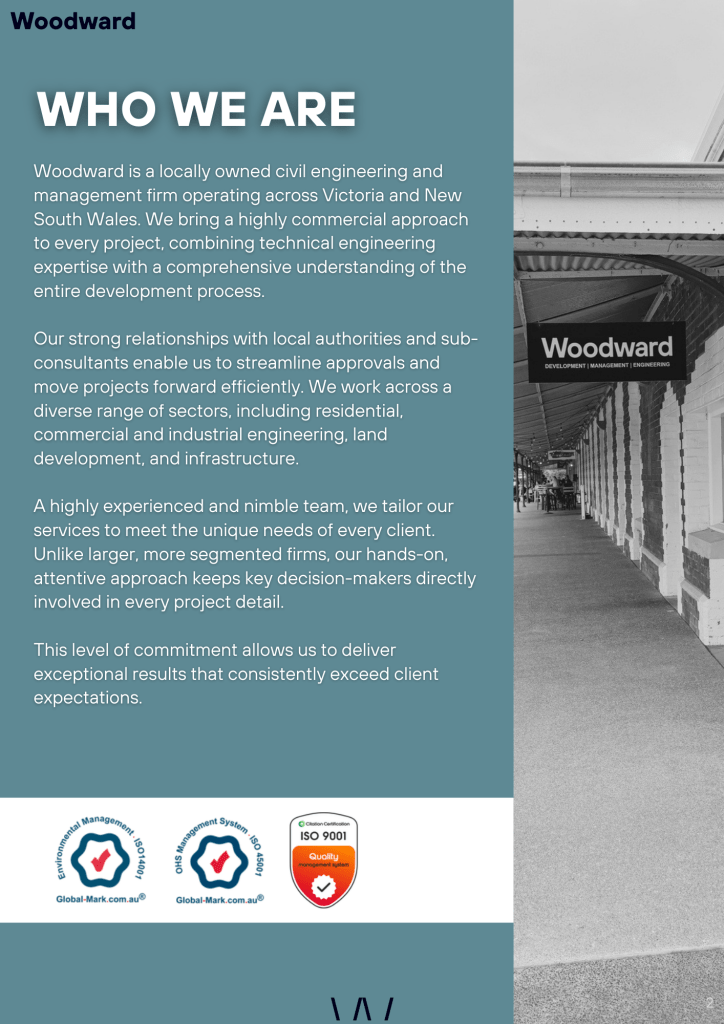I designed and produced a professional capability statement for Woodward Engineering in response to a client design brief. This involved editing existing content and writing new copy to improve clarity, structure, and audience readability, while maintaining technical accuracy and brand alignment.